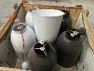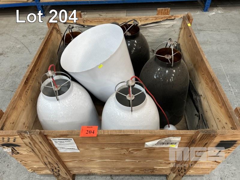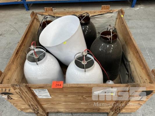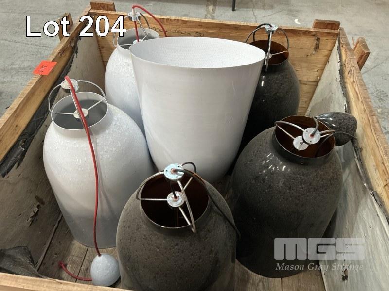 6 x HANGING LIGHT SHADES, WHITE & BLACK 1 x CRATE