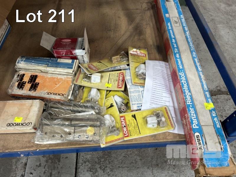 DOOR & WINDOW LOCKS, LATCHES, HINGES, INCLUDING LOCKWOOD DEAD LOCKS, PUSH BUTTON MECHANICAL DOOR LOCKS, FILING CABINET LOCKS, ETC 1 x SHELF
