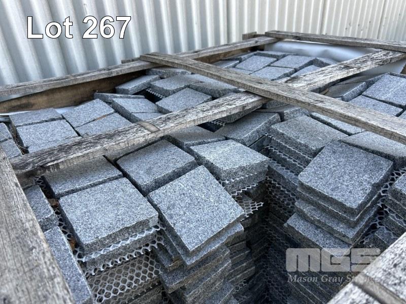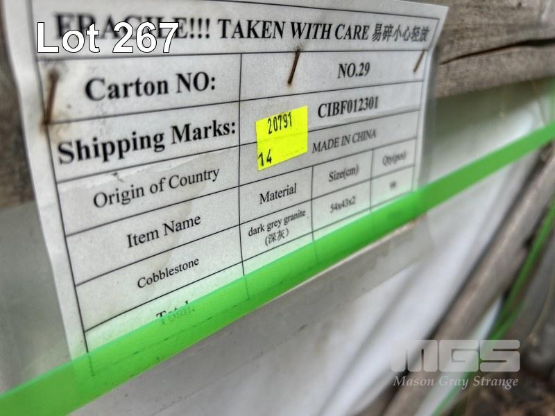 COBBLE STONES, DARK GREY GRANITE, 22.98m2 TOTAL, SHEET SIZE: 540 x 430 x 20mm, STONE SIZE: 100 x 100 x 20mm, PACKAGED IN TIMBER CRATE