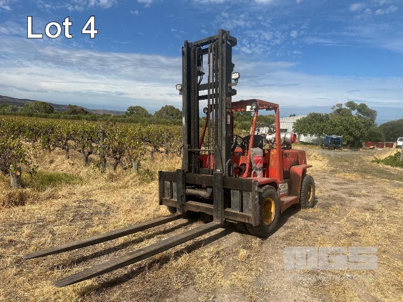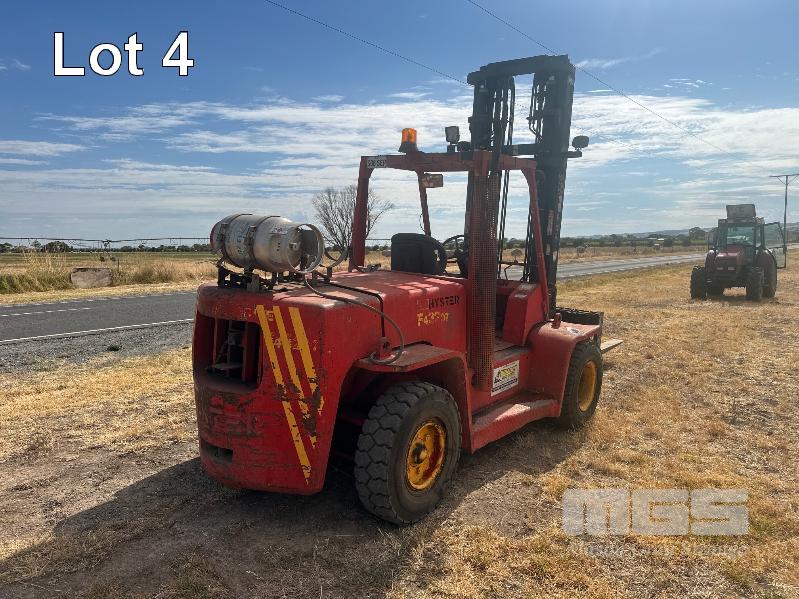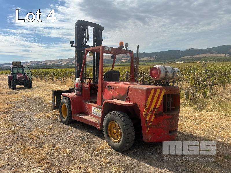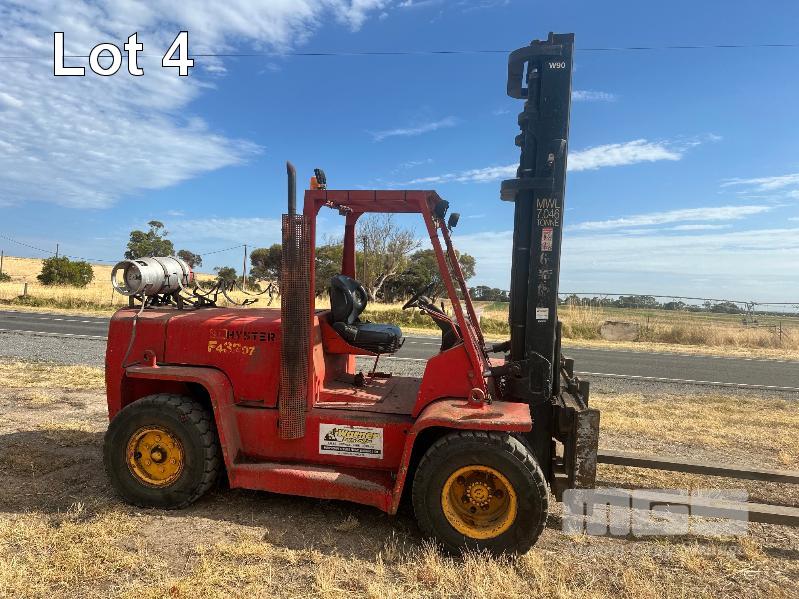 FORKLIFT, HYSTER MOD: H7.00XL HOURS: 6,397 INDICATED 6,400kg LIFT, SIDE SHIFT 4 SPEED MANUAL LPG PETROL 2 STAGE MAST, 4400mm