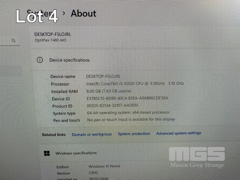ALL-IN-ONE PC, DELL OPTIPLEX 7480, CORE i5 10500 (10TH GEN) @ 3.1GHz, 8GB DDR4 RAM, 512GB NVMe M.2 SSD, INBUILT 23.8" FHD WIDESCREEN (1920x1080), INTEL HD VIDEO, WEBCAM, 5 x USB, 1 x USB-C, Wi-Fi, BLUETOOTH, WINDOWS 11 HOME INSTALLED, KEYBOARD & MOUSE S/N:6JMWVD3