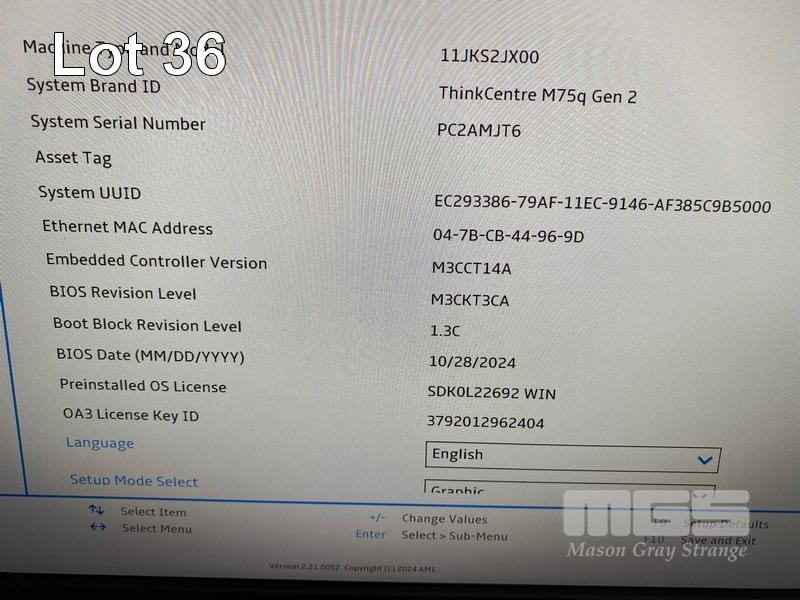 DESKTOP PC, LENOVO THINKCENTRE M75q GEN 2 TINY, TYPE 11JK, AMD RYZEN 5 4600GE @ 3.3GHz, 16GB DDR4 RAM, 512GB NVMe M.2 SSD, Wi-Fi, BLUETOOTH, WINDOWS 11 PRO EDUCATION INSTALLED & POWER SUPPLY (NO KEYBOARD, NO MOUSE) S/N:PC2AMJT6