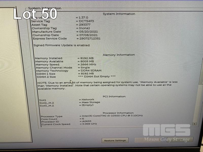 ALL-IN-ONE PC, DELL OPTIPLEX 7480, CORE i5 10500 (10TH GEN) @ 3.1GHz, 8GB DDR4 RAM, 512GB NVMe M.2 SSD, INBUILT 23.8" FHD WIDESCREEN (1920x1080), INTEL HD VIDEO, WEBCAM, 5 x USB, 1 x USB-C, Wi-Fi, BLUETOOTH, WINDOWS 11 HOME INSTALLED, KEYBOARD & MOUSE S/N:DCT54F3