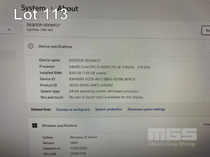 ALL-IN-ONE PC, DELL OPTIPLEX 7480, CORE i5 10500 (10TH GEN) @ 3.1GHz, 8GB DDR4 RAM, 512GB NVMe M.2 SSD, INBUILT 23.8" FHD WIDESCREEN (1920x1080), INTEL HD VIDEO, WEBCAM, 5 x USB, 1 x USB-C, Wi-Fi, BLUETOOTH, WINDOWS 11 HOME INSTALLED, KEYBOARD & MOUSE S/N:9RW54F3