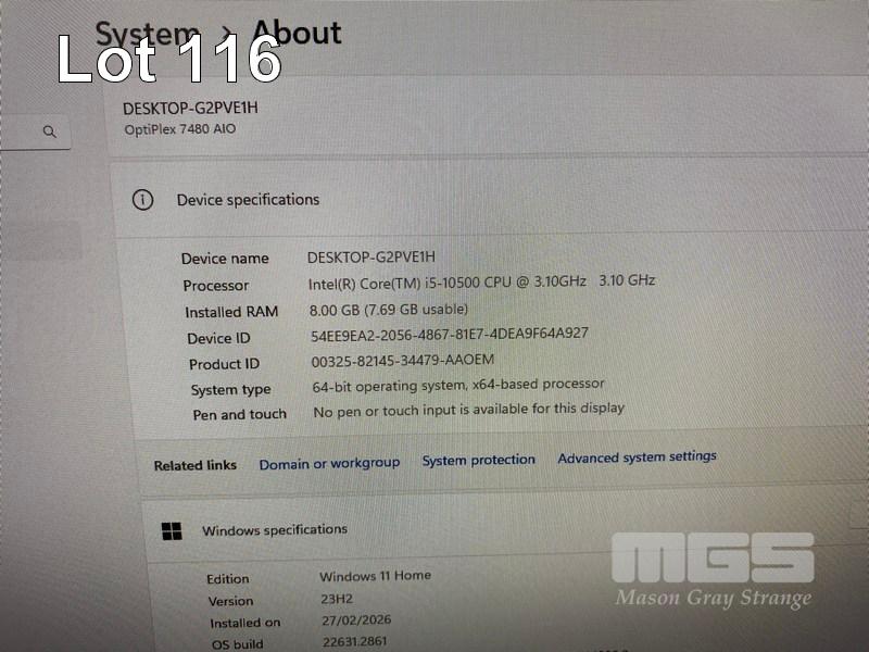 ALL-IN-ONE PC, DELL OPTIPLEX 7480, CORE i5 10500 (10TH GEN) @ 3.1GHz, 8GB DDR4 RAM, 512GB NVMe M.2 SSD, INBUILT 23.8" FHD WIDESCREEN (1920x1080), INTEL HD VIDEO, WEBCAM, 5 x USB, 1 x USB-C, Wi-Fi, BLUETOOTH, WINDOWS 11 HOME INSTALLED, KEYBOARD & MOUSE S/N:JRW54F3