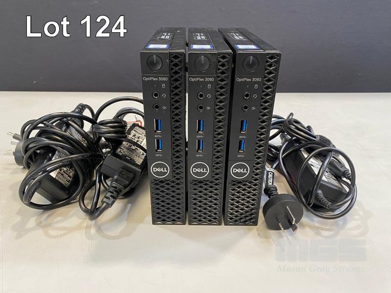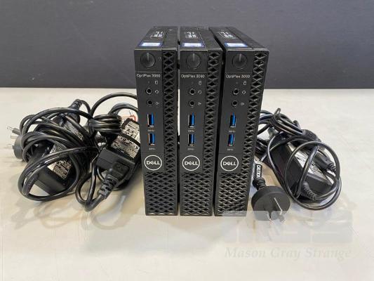 3 x DESKTOP PCS INC. - DELL OPTIPLEX 3060 MICRO, CORE i5 8500T (8TH GEN) @ 2.1GHz, 8GB DDR4 RAM, NO HDD WITH POWER SUPPLIES (65W) S/N:8S750T2, 8S670T2, 8SC90T2