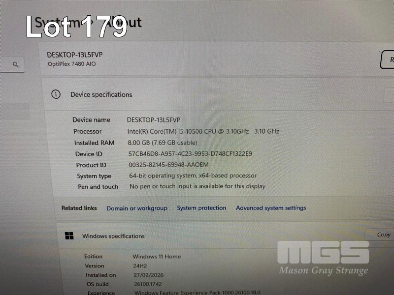 ALL-IN-ONE PC, DELL OPTIPLEX 7480, CORE i5 10500 (10TH GEN) @ 3.1GHz, 8GB DDR4 RAM, 512GB NVMe M.2 SSD, INBUILT 23.8" FHD WIDESCREEN (1920x1080), INTEL HD VIDEO, WEBCAM, 5 x USB, 1 x USB-C, Wi-Fi, BLUETOOTH, WINDOWS 11 HOME INSTALLED, KEYBOARD & MOUSE S/N:5SW54F3