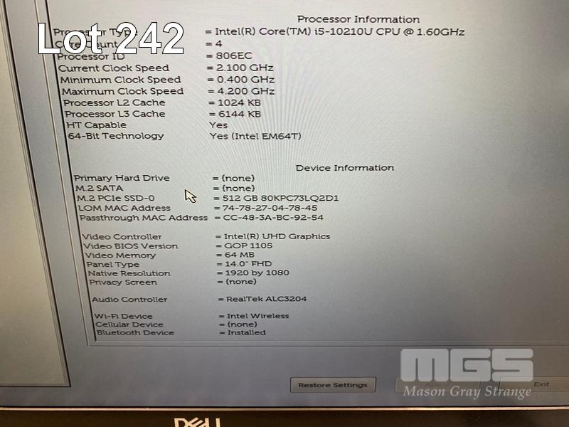 LAPTOP, DELL LATITUDE 5410, CORE i5 10210U (10TH GEN) @ 1.6GHz, 8GB DDR4 RAM, 512GB NVMe M.2 SSD, 14" WIDESCREEN (1920x1080), INTEL UHD GRAPHICS, Wi-Fi, BLUETOOTH, WINDOWS 11 HOME INSTALLED & POWER SUPPLY (NOTE: BATTERY NOT HOLDING CHARGE, CASING PEELING) S/N:JN27373