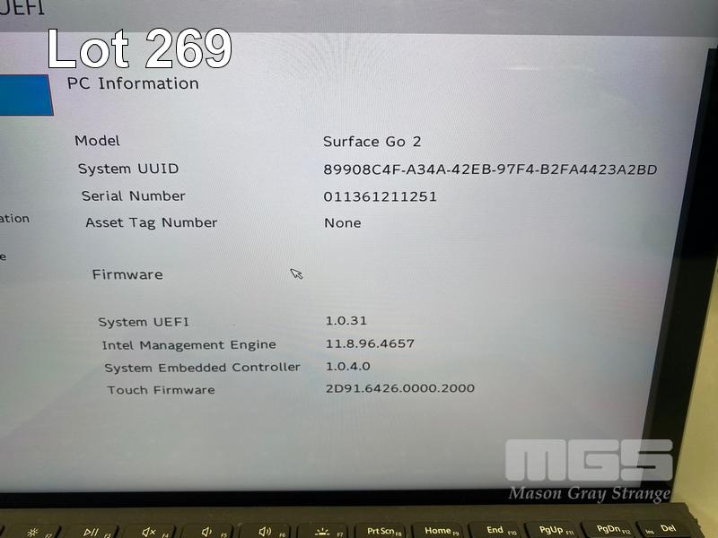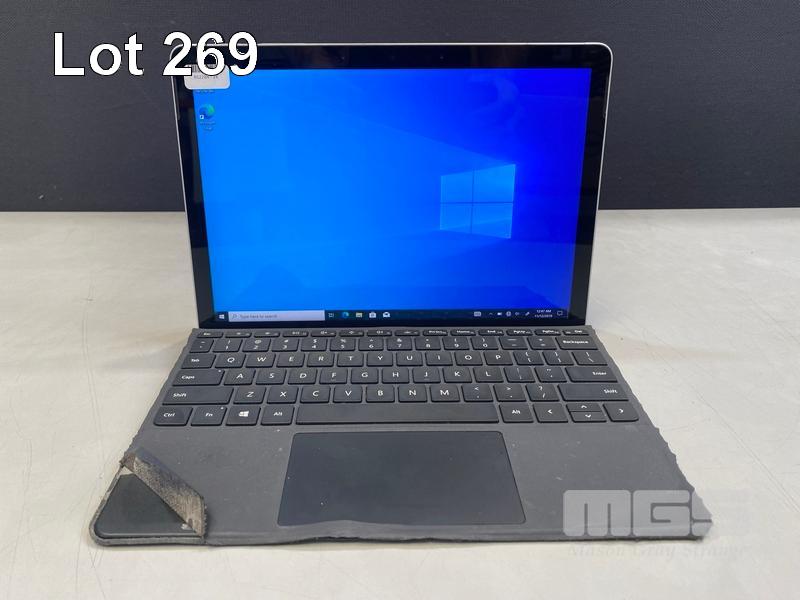 TABLET PC, MICROSOFT SURFACE GO 2, MODEL 1901, PENTIUM GOLD 4425Y @ 1.7GHz, 8GB DDR3 RAM, 128GB NVMe M.2 SSD, 10" TOUCHSCREEN (1800x1200), INTEL UHD GRAPHICS 615, Wi-Fi, BLUETOOTH, WINDOWS 10 PRO INSTALLED, KEYBOARD TYPE COVER & POWER SUPPLY (NOTE: KEYBOARD POOR CONDITION) S/N:011361211251