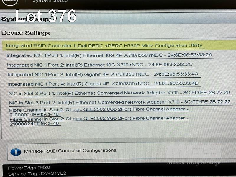 RACKMOUNT SERVER, DELL EMC POWEREDGE R630, 1U, 2 x XEON E5-2687W v4 @ 3GHz, 512GB ECC DDR4 RAM (16x32GB), 6 x 300GB SAS HDD, DVD-RW, 2-PORT QLOGIC QLE2562 8Gb FC ADAPTER, 2-PORT X710 NETWORK ADAPTER, 2 x 1100W PSU WITH RAILS (NO CABLES) S/N:DWG1GL2