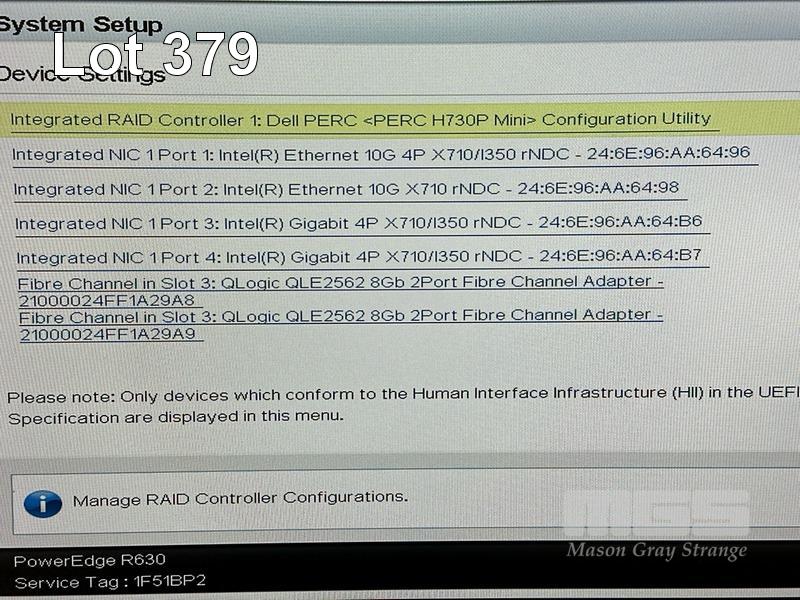 RACKMOUNT SERVER, DELL EMC POWEREDGE R630, 1U, 2 x XEON E5-2687W v4 @ 3GHz, 512GB ECC DDR4 RAM (16x32GB), 2 x 300GB SAS HDD, DVD-RW, 2-PORT QLOGIC QLE2562 8Gb FC ADAPTER, 2 x 1100W PSU WITH RAILS (NO CABLES) S/N:1F51BP2