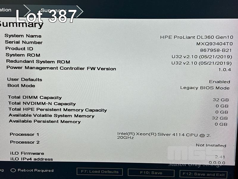 RACKMOUNT SERVER, HP PROLIANT DL360 GEN10, 1U, XEON SILVER 4114 @ 2.2GHz, 32GB ECC DDR4 RAM, 2 x 1TB SATA HDD, 2 x 500W PSU (NO CABLES) S/N:MXQ93404T0