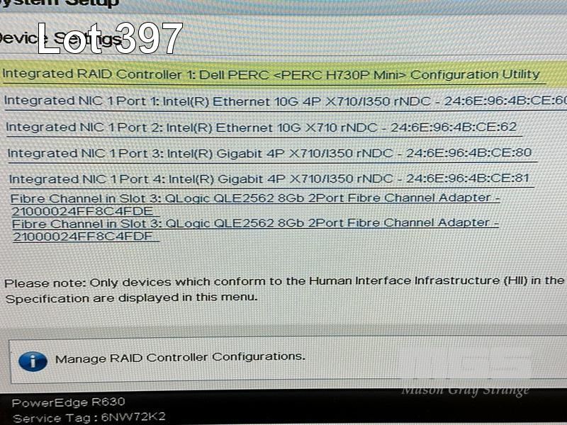 RACKMOUNT SERVER, DELL EMC POWEREDGE R630, 1U, 2 x XEON E5-2687W v4 @ 3GHz, 256GB ECC DDR4 RAM (8x32GB), 2 x 400GB SAS SSD, DVD-RW, 2-PORT QLOGIC QLE2562 8Gb FC ADAPTER, 2 x 1100W PSU WITH RAILS (NO CABLES) S/N:6NW72K2