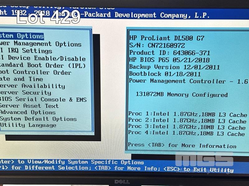 RACKMOUNT SERVER, HP PROLIANT DL580 G7, 4U, 4 x XEON E7-4807 @ 1.87GHz, 128GB ECC DDR3 RAM, NO HDD WITH CADDIES, 4 x PSU APC SMART-UPS, SRT6KRMXLI, 6000VA (WITH 1 x BATTERY), AP9631 NETWORK MANAGEMENT CARD (NO CABLES) S/N:CN7216097Z, AS1940270551