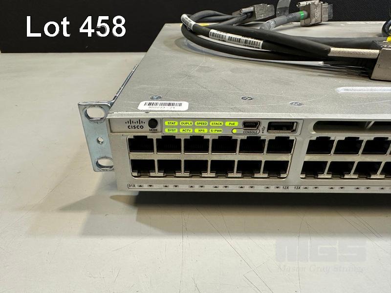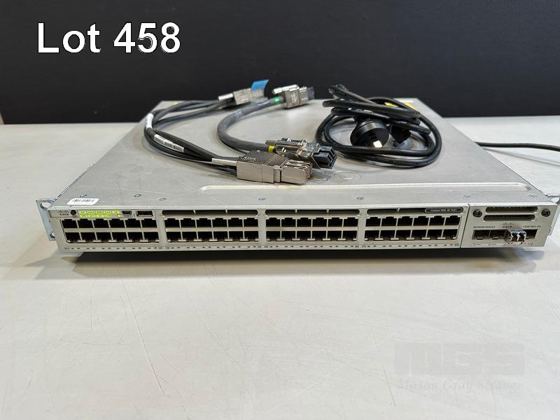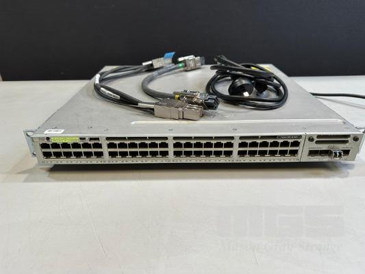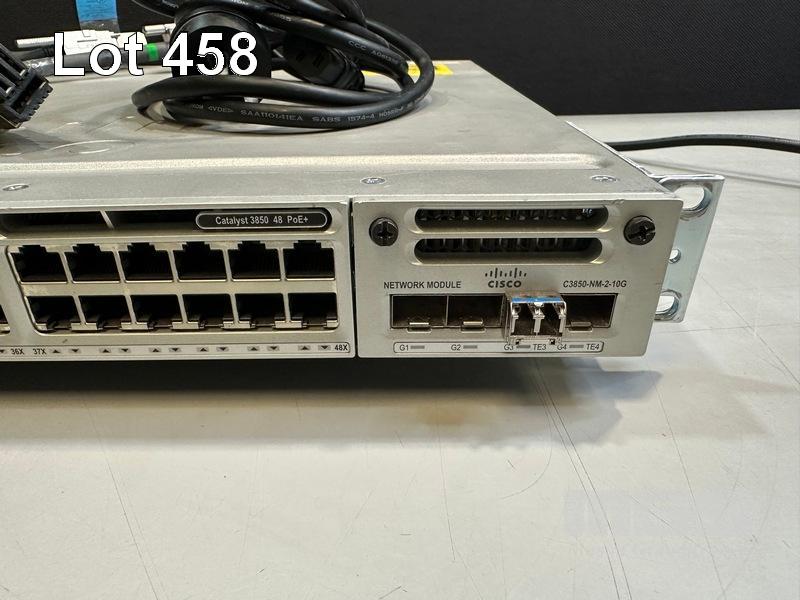 CISCO CATALYST 3850 48 PoE+ 48-PORT SWITCH, WS-C3850-48F-L V07 C3850-NM-2-10G NETWORK MODULE, 1 x PWR-C1-1100WAC PSU WITH NOTCH POWER CABLE & STACK CABLES S/N:FCW2138C0NU