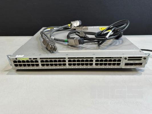 CISCO CATALYST 3850 48 PoE+ 48-PORT SWITCH, WS-C3850-48F-L V07 C3850-NM-2-10G NETWORK MODULE, 1 x PWR-C1-1100WAC PSU WITH NOTCH POWER CABLE & STACK CABLES