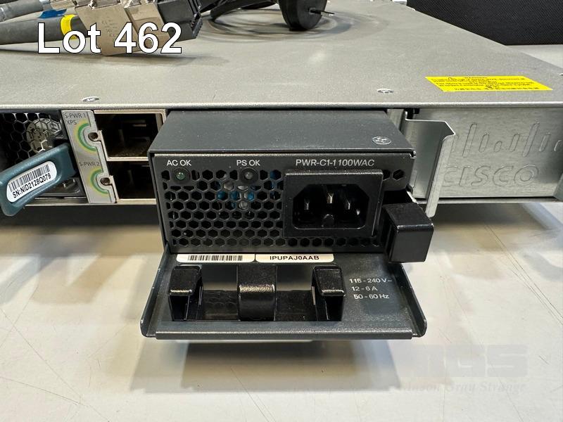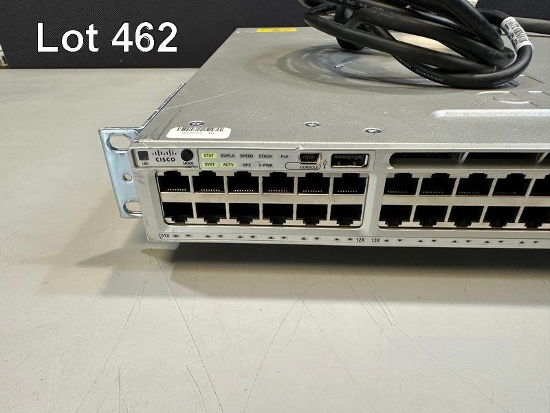 CISCO CATALYST 3850 12X 48 UPOE 48-PORT SWITCH, WS-C3850-12X48U-L V02 1 x PWR-C1-1100WAC PSU WITH NOTCH POWER CABLE & POWER STACK CABLE S/N:FOC2135U0XF