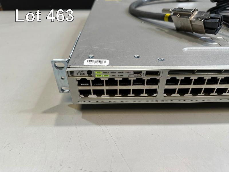 CISCO CATALYST 3850 12X 48 UPOE 48-PORT SWITCH, WS-C3850-12X48U-L V02 1 x PWR-C1-1100WAC PSU WITH NOTCH POWER CABLE & POWER STACK CABLE S/N:FOC2135U14E
