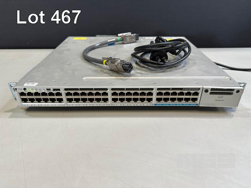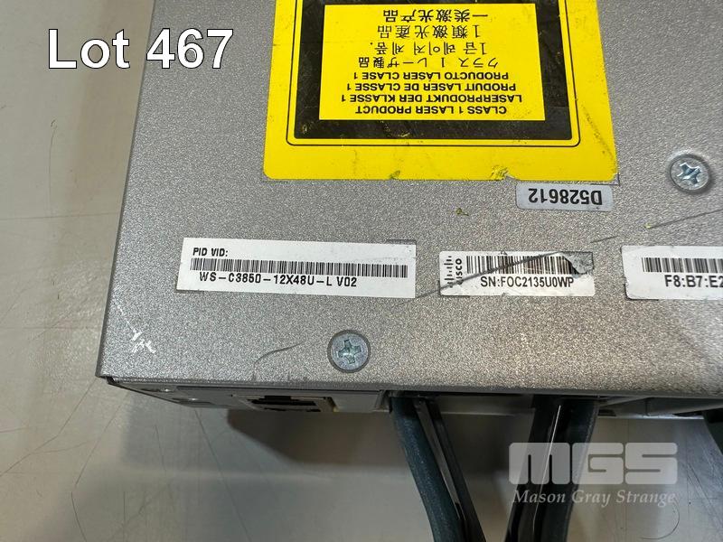 CISCO CATALYST 3850 12X 48 UPOE 48-PORT SWITCH, WS-C3850-12X48U-L V02 1 x PWR-C1-1100WAC PSU WITH NOTCH POWER CABLE & POWER STACK CABLE S/N:FOC2135U0WP