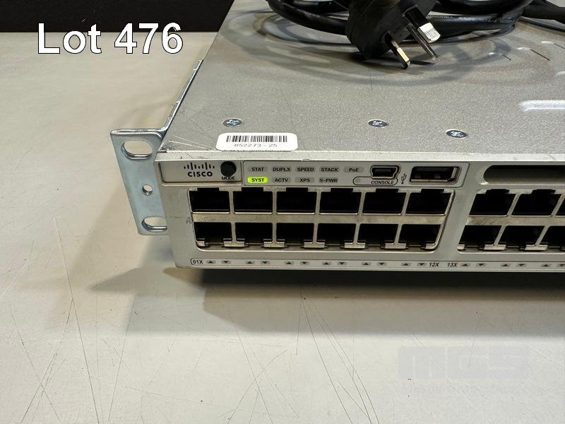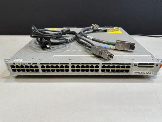 CISCO CATALYST 3850 48 PoE+ 48-PORT SWITCH, WS-C3850-48F-L V07 1 x PWR-C1-1100WAC PSU WITH NOTCH POWER CABLE & STACK CABLES S/N:FCW2138C0NE