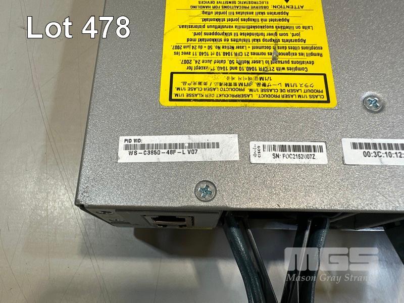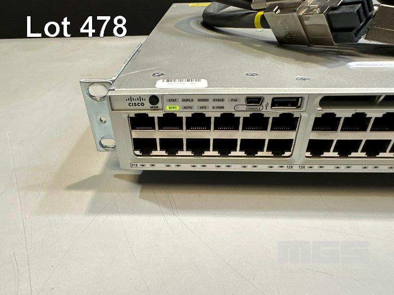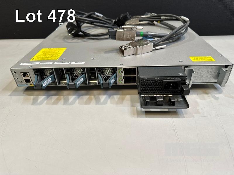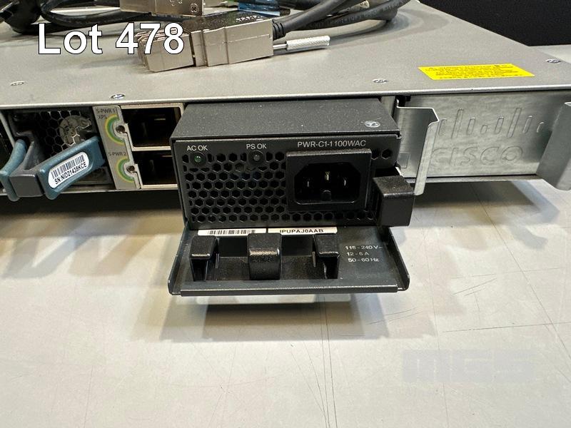CISCO CATALYST 3850 48 PoE+ 48-PORT SWITCH, WS-C3850-48F-L V07 1 x PWR-C1-1100WAC PSU WITH NOTCH POWER CABLE & STACK CABLES S/N:FOC2152U07Z
