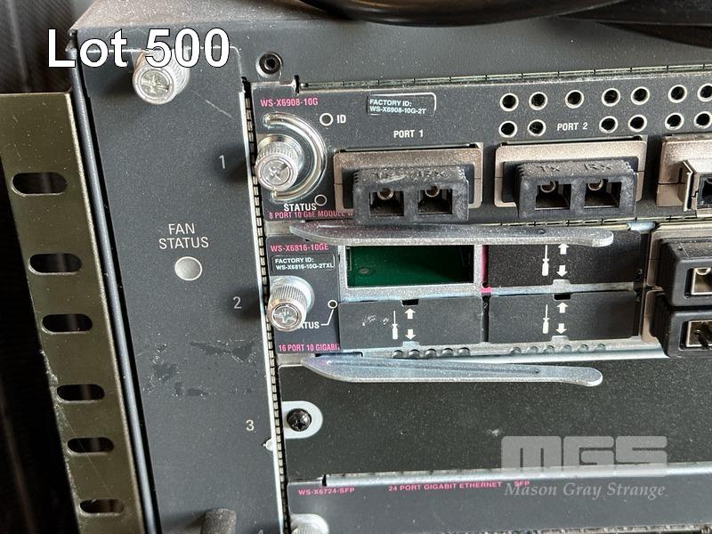CISCO CATALYST C6500-E SWITCH CHASSIS, MODEL WS-C6509-E V02, INC. 1 x WS-X6908-10G, 1 x WS-X6816-10GE, 1 x WS-X6724-SFP, 1 x VS-SUP2T-10G, 2 x PSU WITH 15A CABLES S/N:SMC0943003Y