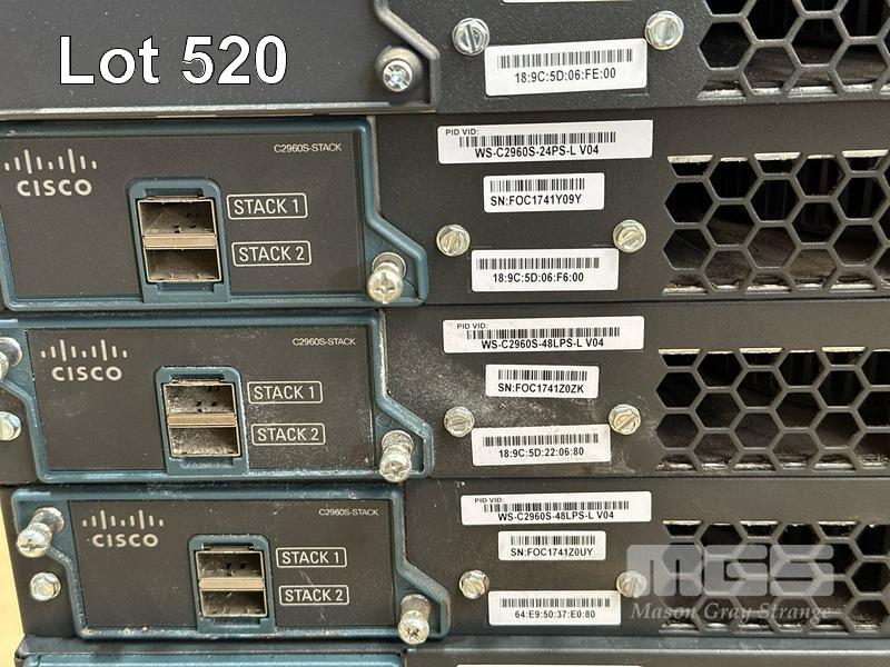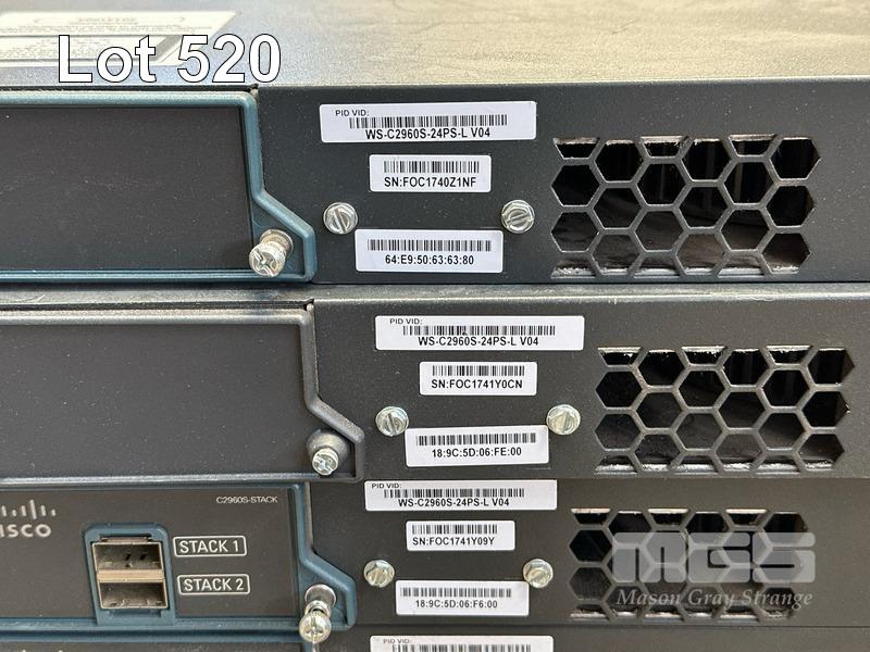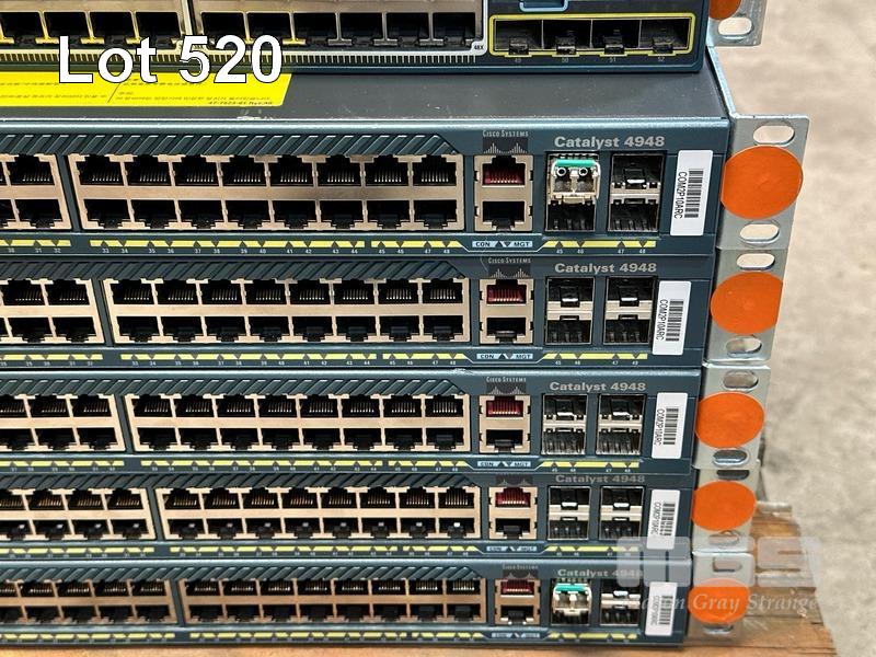 3 x CISCO CATALYST 2960-S SERIES PoE+ 24-PORT SWITCHES, WS-C2960S-24PS-L 3 x CISCO CATALYST 2960-S SERIES PoE+ 48-PORT SWITCHES, WS-C2960S-48LPS-L 5 x CISCO CATALYST 4948 48-PORT SWITCHES, WS-C4948 S (NO CABLES) S/N:FOC1740Z1NF, FOC1741Y0CN, FOC1741Y09Y, FOC1741Z0ZK, FOC1741Z0UY, FOC1714Y1G7, FOX1220GJP8, FOX1212G12M, FOX1222GLH8, FOX1205GK6H, FOX1211GE6M
