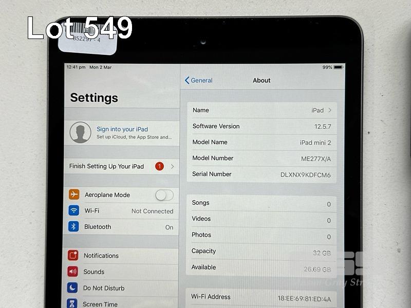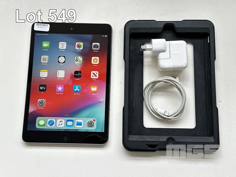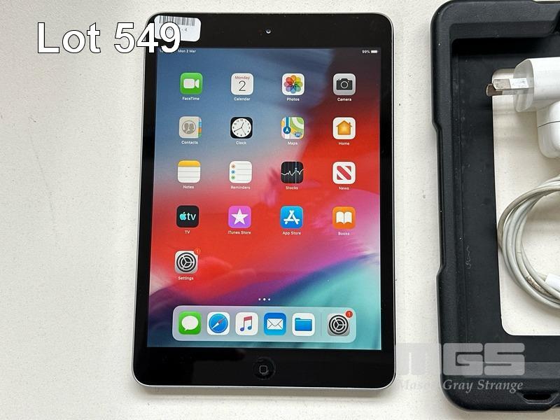 APPLE iPAD MINI 2, 32GB, Wi-Fi, SPACE GREY, MODEL ME277X/A, A1489 WITH CABLE & CHARGER S/N:DLXNX9KDFCM6