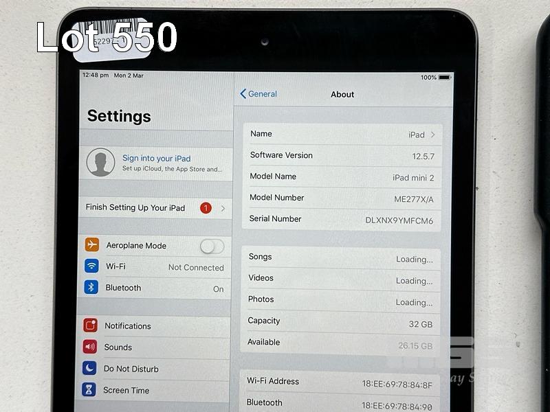 APPLE iPAD MINI 2, 32GB, Wi-Fi, SPACE GREY, MODEL ME277X/A, A1489 WITH CABLE & CHARGER S/N:DLXNX9YMFCM6