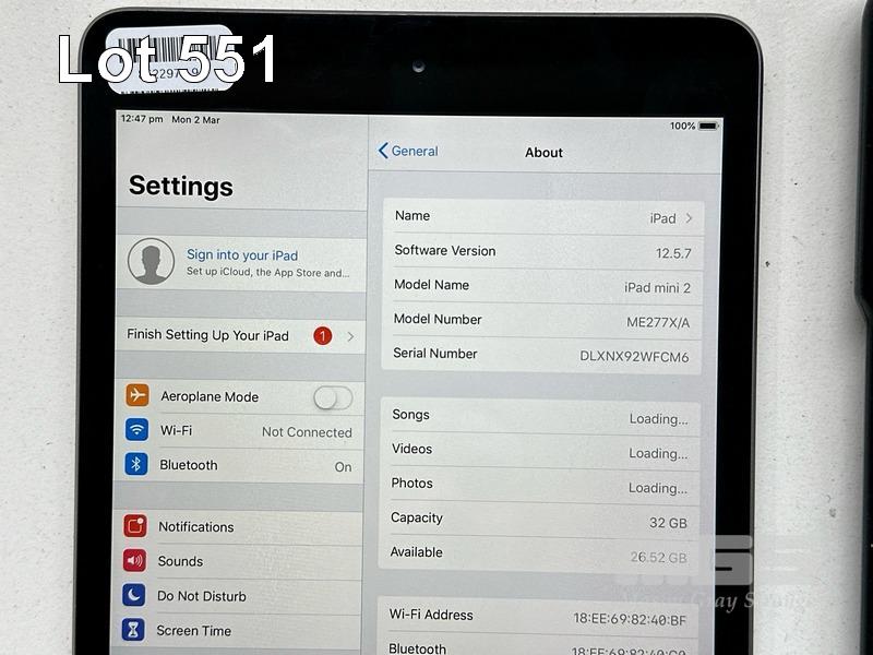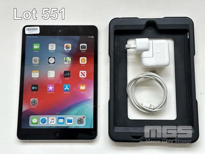 APPLE iPAD MINI 2, 32GB, Wi-Fi, SPACE GREY, MODEL ME277X/A, A1489 WITH CABLE & CHARGER S/N:DLXNX92WFCM6