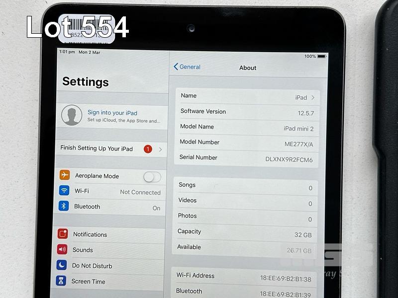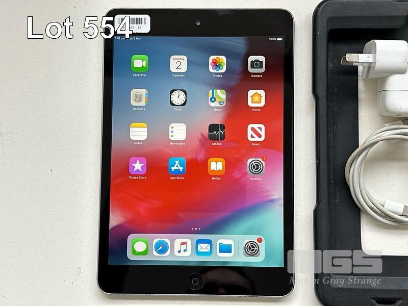 APPLE iPAD MINI 2, 32GB, Wi-Fi, SPACE GREY, MODEL ME277X/A, A1489 WITH CABLE & CHARGER S/N:DLXNX9R2FCM6