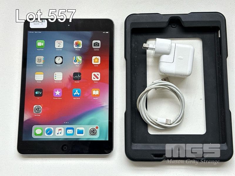 APPLE iPAD MINI 2, 32GB, Wi-Fi, SPACE GREY, MODEL ME277X/A, A1489 WITH CABLE & CHARGER (NOTE: MINOR SCRATCHES ON SCREEN) S/N:DLXNX9VUFCM6