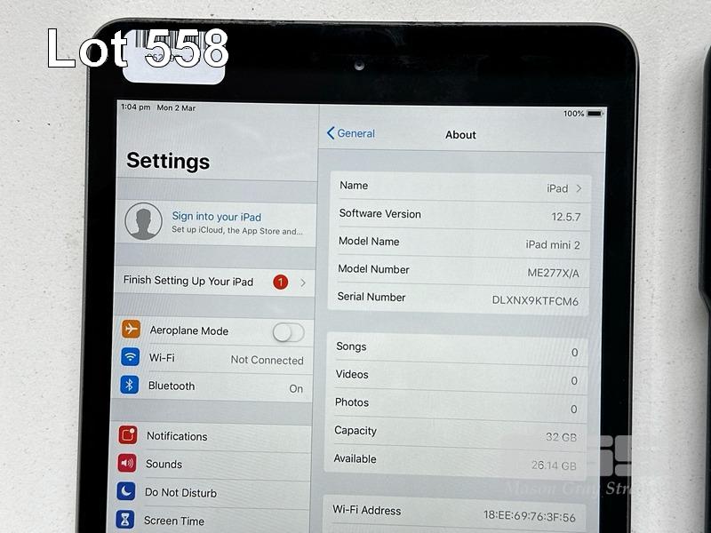 APPLE iPAD MINI 2, 32GB, Wi-Fi, SPACE GREY, MODEL ME277X/A, A1489 WITH CABLE & CHARGER (NOTE: MINOR SCRATCHES ON SCREEN) S/N:DLXNX9KTFCM6
