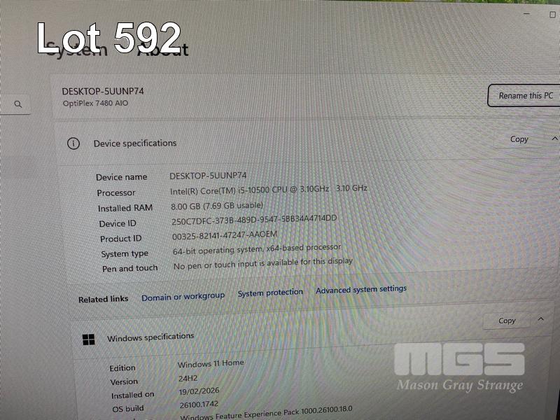 ALL-IN-ONE PC, DELL OPTIPLEX 7480, CORE i5 10500 (10TH GEN) @ 3.1GHz, 8GB DDR4 RAM, 512GB NVMe M.2 SSD, INBUILT 23.8" FHD WIDESCREEN (1920x1080), INTEL HD VIDEO, WEBCAM, 5 x USB, 1 x USB-C, Wi-Fi, BLUETOOTH, WINDOWS 11 HOME INSTALLED, KEYBOARD & MOUSE (NOTE: SCRATCH ON SCREEN) S/N:HCT54F3