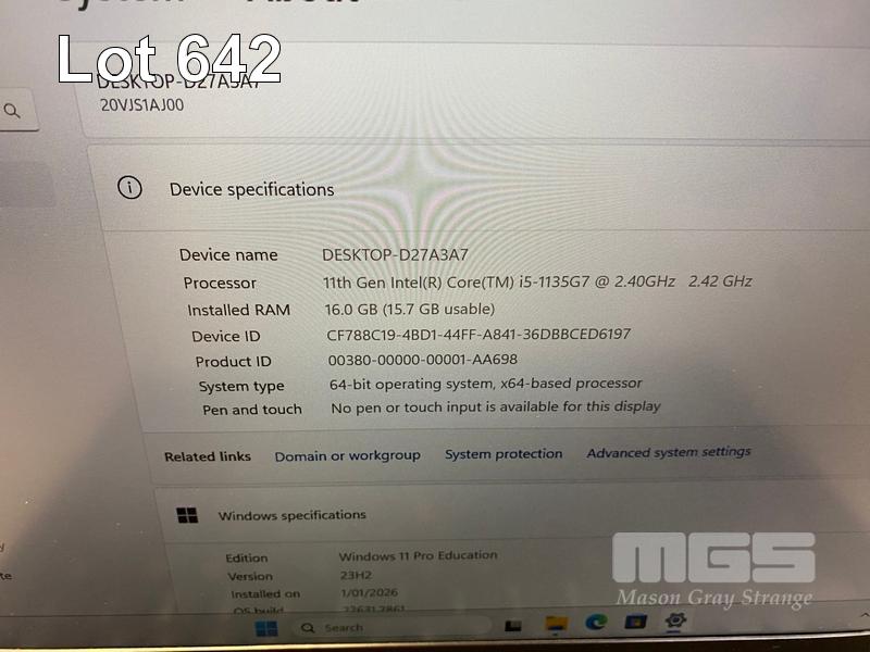LAPTOP, LENOVO THINKPAD L13 Gen2, TYPE 20VJ, CORE i5 1135G7 (11TH GEN) @ 2.4GHz, 16GB DDR4 RAM, 512GB NVMe M.2 SSD, 13.3" WIDESCREEN (1920x1080), INTEL IRIS Xe GRAPHICS, Wi-Fi, BLUETOOTH, WINDOWS 11 PRO EDUCATION INSTALLED (NO USB-C POWER SUPPLY) (NOTE: MISSING 2 x KEYS, CASE MISSING "THINKPAD" LOGO, MINOR MARKS ON SCREEN) S/N:R914NMCH