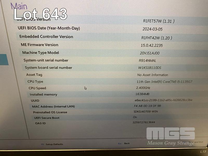 LAPTOP, LENOVO THINKPAD L13 Gen2, TYPE 20VJ, CORE i5 1135G7 (11TH GEN) @ 2.4GHz, 16GB DDR4 RAM, 512GB NVMe M.2 SSD, 13.3" WIDESCREEN (1920x1080), INTEL IRIS Xe GRAPHICS, Wi-Fi, BLUETOOTH, WINDOWS 11 HOME INSTALLED (NO USB-C POWER SUPPLY) (NOTE: MISSING 1 x KEY, CASE MISSING "THINKPAD" LOGO, MINOR MARKS & SCRATCHES ON SCREEN) S/N:R914NMAL