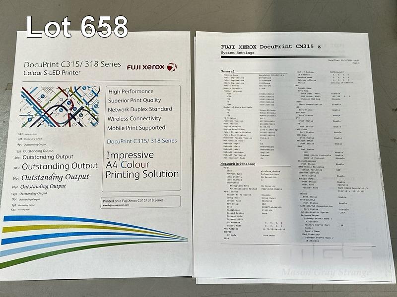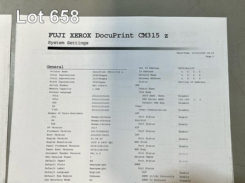 PRINTER, FUJI XEROX DOCUPRINT CM315z COLOUR LASER MFC, ADF, USB, NETWORK, 15,379 COLOUR & 5,583 B&W PAGES (TEST PAGE ATTACHED - POOR QAULITY)