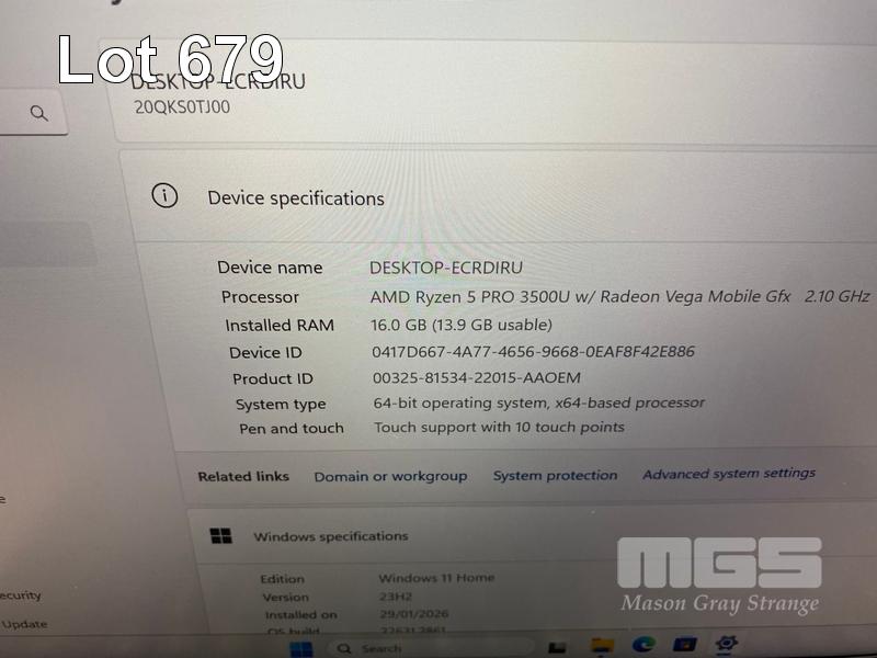 LAPTOP, LENOVO THINKPAD T495s, TYPE 20QK, AMD RYZEN 5 PRO 3500U @ 2.1GHz, 16GB DDR4 RAM, 256GB NVMe M.2 SSD, 14" TOUCHSCREEN (1920x1080), Wi-Fi, BLUETOOTH, WINDOWS 11 HOME INSTALLED (NO USB-C POWER SUPPLY) (NOTE: CRACK LINE ON CASING) S/N:PC1AY2RX