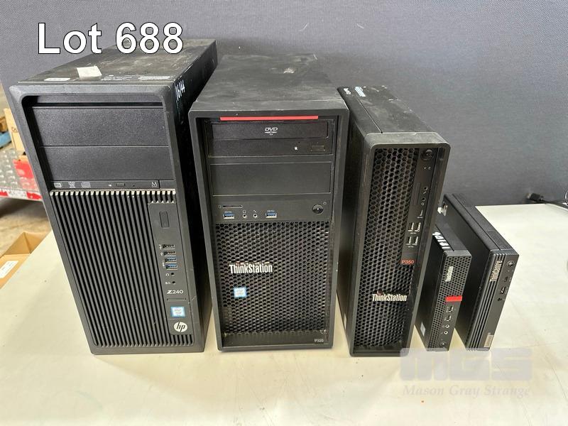 5 x ASST COMPUTERS - INCOMPLETE / FAULTY, NO RAM, NO HDD INC. - HP Z240, LENOVO THINKSTATION P320, LENOVO THINKSTATION P350, LENOVO THINKSTATION P320 TINY, LENOVO THINKCENTRE M75q GEN 2 (MISSING COVER) (NO CABLES)
