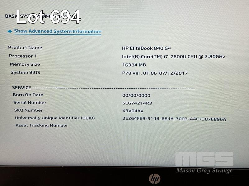 LAPTOP, HP ELITEBOOK 840 G4, CORE i7 7600U (7TH GEN) @ 2.8GHz, 16GB DDR4 RAM, 256GB M.2 SSD, 14" WIDESCREEN (1920x1080), INTEL HD VIDEO, Wi-Fi, CELLULAR, BLUETOOTH, WINDOWS 10 PRO INSTALLED & POWER SUPPLY (NOTE: BATTERY NOT CHARGING, MINOR MARKS ON SCREEN) S/N:5CG74214R3