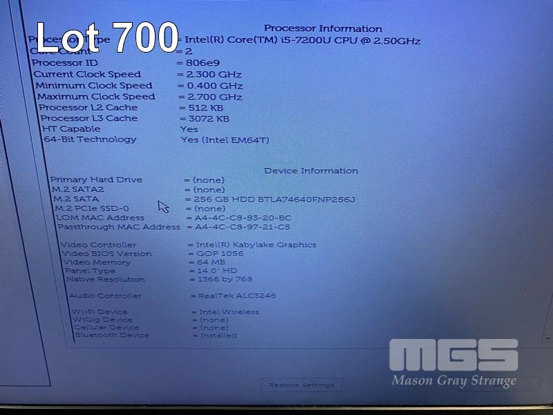 LAPTOP, DELL LATITUDE 5480, CORE i5 7200U (7TH GEN) @ 2.5GHz, 8GB DDR4 RAM, 256GB M.2 SSD, 14" WIDESCREEN (1366x768), INTEL HD GRAPHICS 620, Wi-Fi, BLUETOOTH, WINDOWS 10 HOME INSTALLED & POWER SUPPLY S/N:BPYV3M2