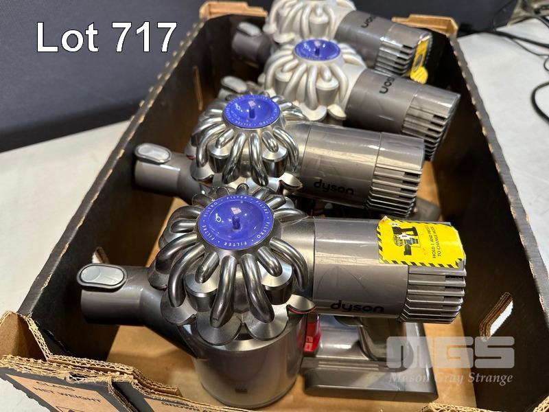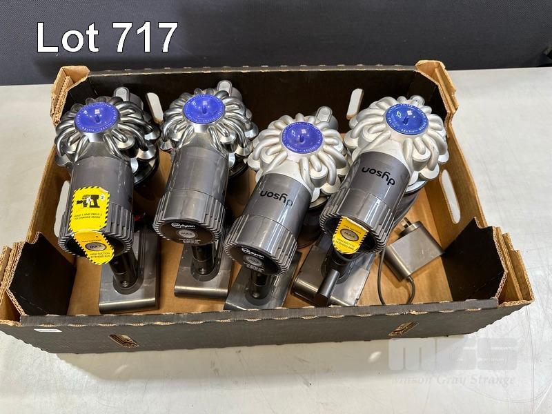 4 x DYSON DC HAND HELD VACUUMS, 1 x CHARGER (NOTE: NO ACCESSORIES)
