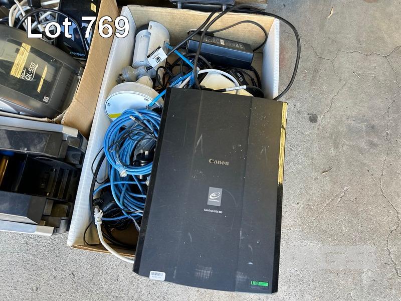 PALLET LOT ASST NETWORKING, LENOVO DOCKING STATIONS (NO POWER SUPPLIES), LABEL PRINTERS, SCANNER, LUMENS DOCUMENT CAMERAS, 2 x MONITORS, 2 x PROJECTION SCREENS ETC