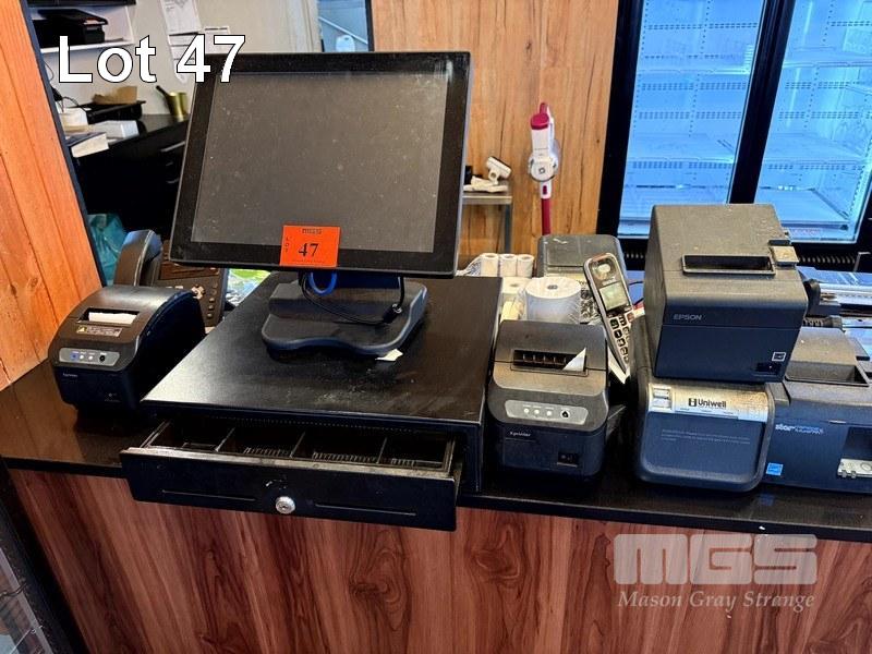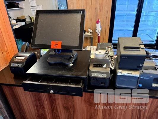 POS SYSTEM MONITOR, SINGLE CASH DRAWER, 5 x DOCKET PRINTERS, TELEPHONE HANDSET & UNIDEN CORDLESS TELEPHONE