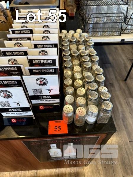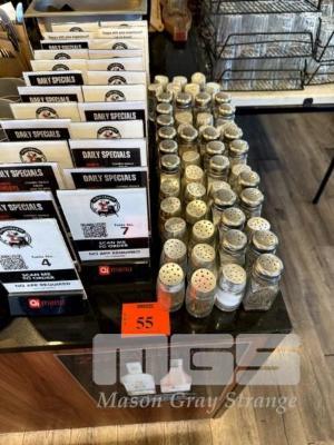 55 x ASSORTED SALT & PEPPER SHAKERS & 25 x TABLE NUMBER HOLDERS