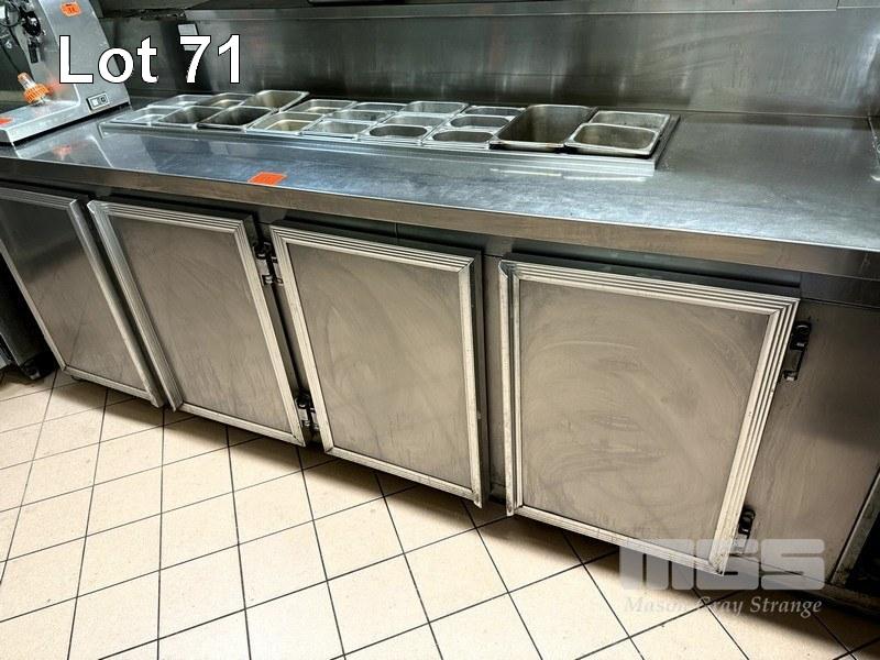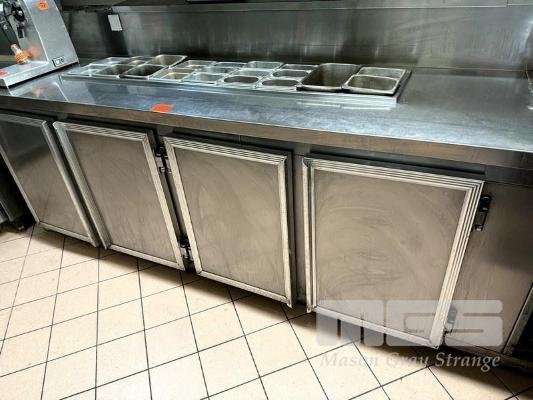 STAINLESS STEEL 4 DOOR INGREDIENT BENCH UNIT, 2450mm WITH INBUILT REFRIGERATION