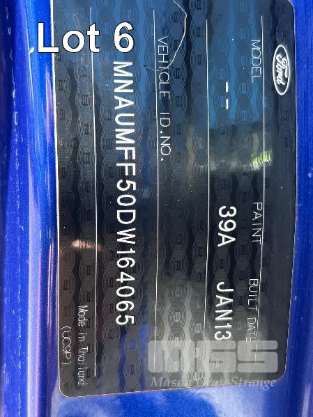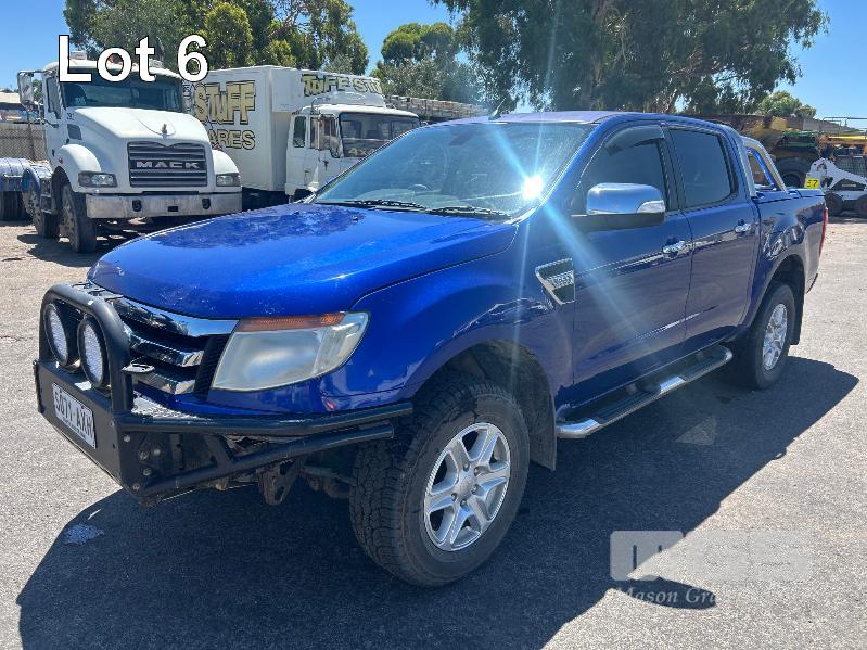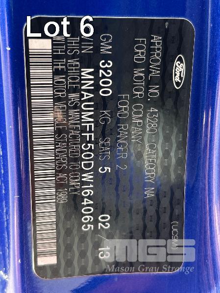 2013 FORD RANGER PX 3.2 XLT HI RIDER DUAL CAB UTILITY 4x2 REG: S071 AXH (SA) VIN: MNAUMFF50DW164065 ODO: 456,071 kms SHOWING DT5 3.2 DIESEL, 6 SPEED MANUAL TRANSMISSION, BLUE, 4 DOORS, 5 SEAT, 4x2 AIR BAG, AIR CON, ALLOY WHEELS, BLUETOOTH, BULL BAR, CD PLAYER, CENTRAL LOCKING, CRUISE CONTROL, IMMOBILISER, POWER STEERING, POWER WINDOWS, SIDE STEP, SPARE WHEEL, SPOT LIGHTS, TOW BAR, TRACTION CONTROL, KEY #40 (WITH 1 KEY/S)