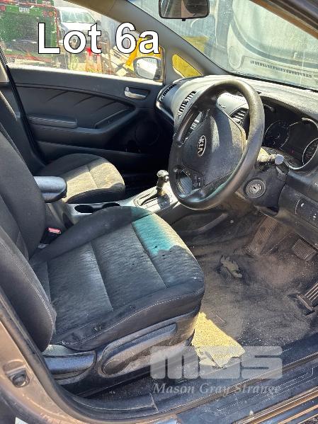 2015 KIA CERATO YDMY15 HATCH REG: S769 BFP VIN: KNAFK516MF5407794 ODO: 329374 1.8 LITRE PETROL, 6 SPEED AUTOMATIC TRANSMISSION, GREY DUCO, 5 DOORS, 5 SEAT, FWD ABS, AIR BAG, AIR CON, CENTRAL LOCKING, CRUISE CONTROL, POWER STEERING, POWER WINDOWS, NEW BATTERY! KEY #3 (WITH OWNER'S MANUAL) CONDITION: INTERIOR CONDITION - POOR REAR TAIL LIGHT - BROKEN - VARIOUS DENTS, SCRATCHES & FADED PAINT