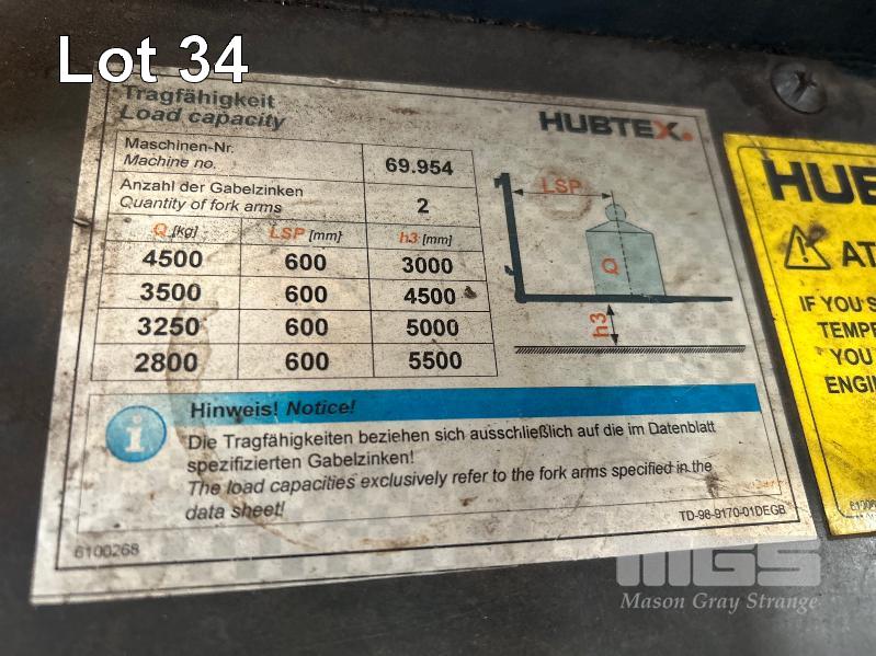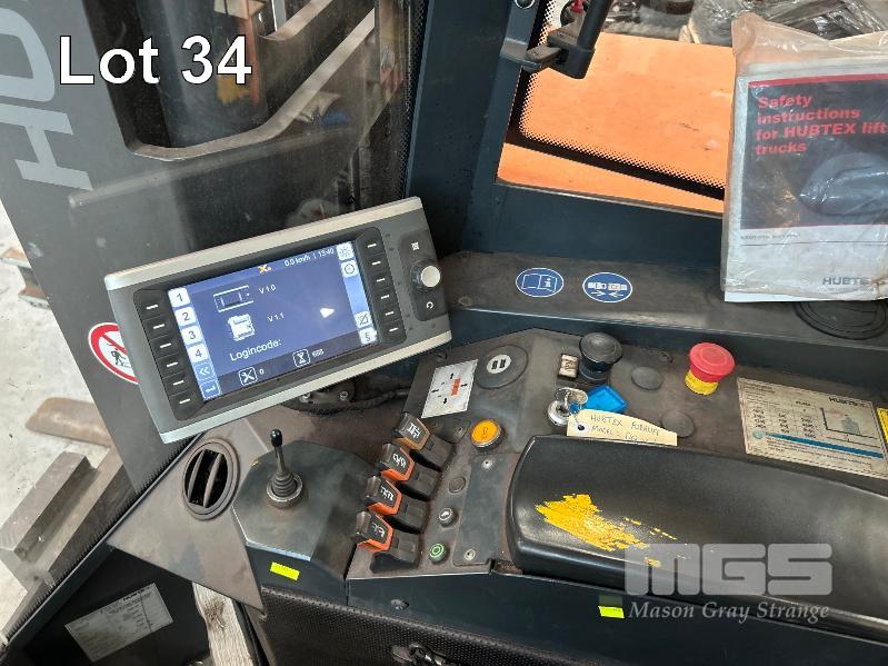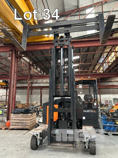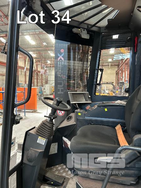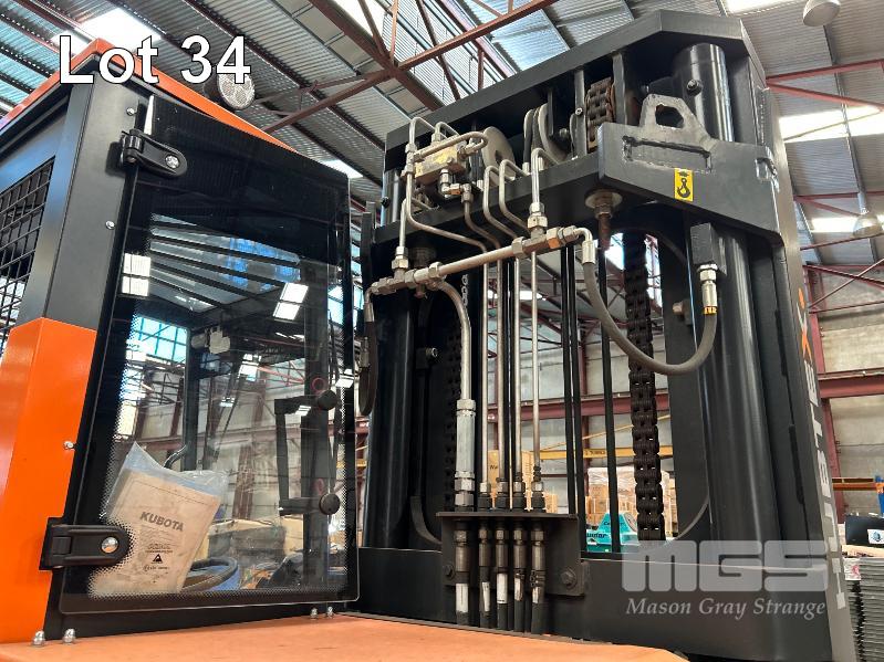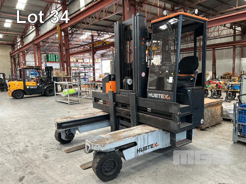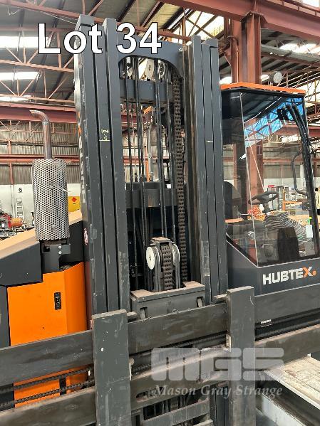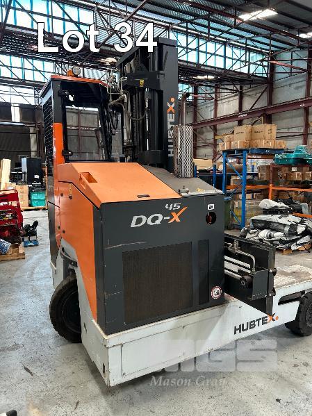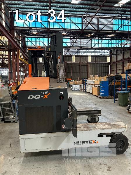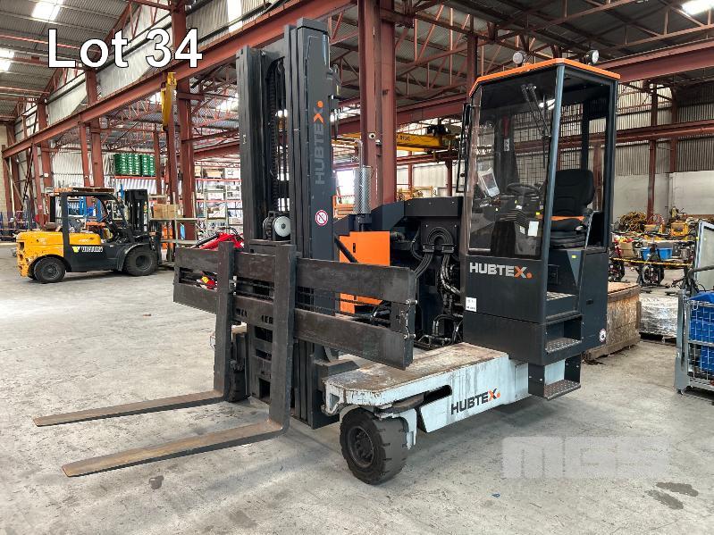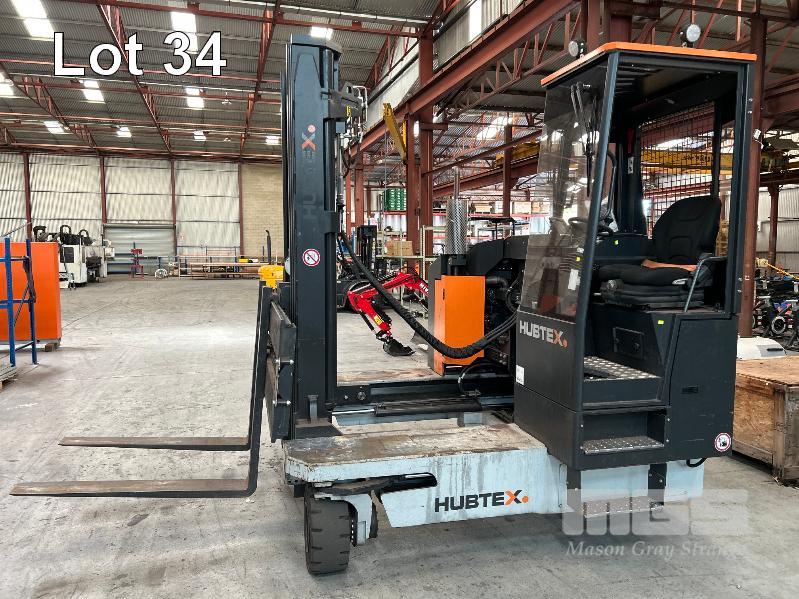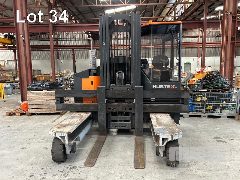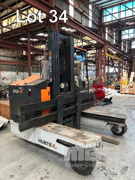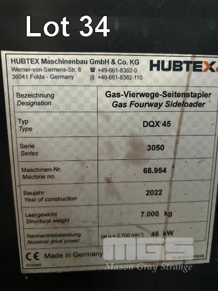 2022 HUBTEX FOURWAY SIDELOADER FORKLIFT 4.5T MODEL: DQX-45 SERIES: 3050 MACHINE No:68.954 POWERED BY KUBOTA 4 CYLINDER LGP ENGINE HRS SHOWING: 655 3 STAGE MAST, MAXIMUM LIFT HEIGHT: 5500mm MAXIMUM LIFT CAP. 4500kg KEY# 5