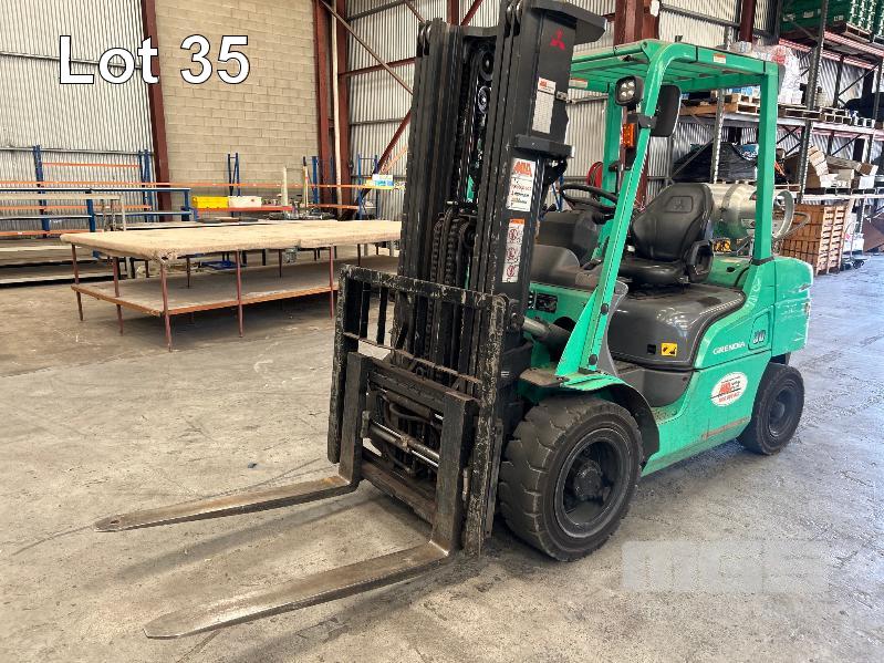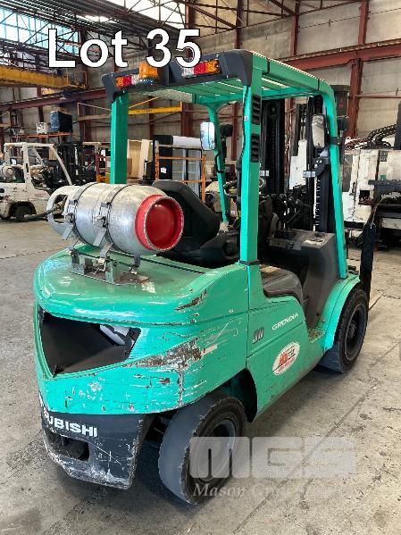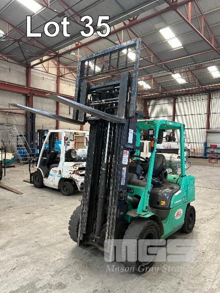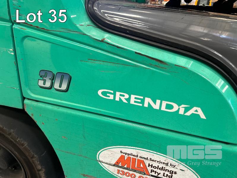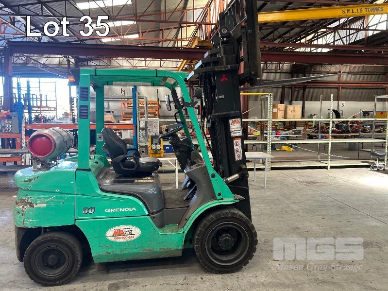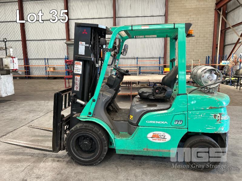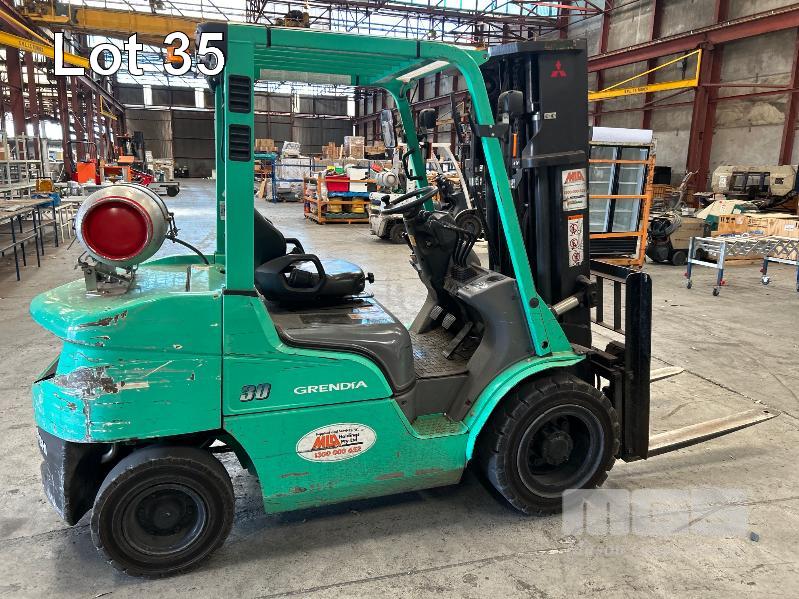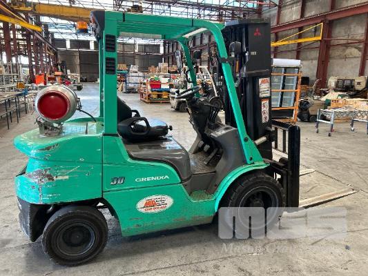 2022 MITSUBISHI GRENDIA FORKLIFT, 3T MOD: FG30NT S/NO: CF13F-48635 POWERED BY 4 CYLINDER, DUAL FUEL ENGINE HOURS: 1,925 SHOWING CONTAINER MAST, SIDE SHIFT & TYNE POSITIONING SOLID TYRES MAX LIFT HEIGHT: 4,700mm MAX LIFT CAP: 2,425kg KEY #41